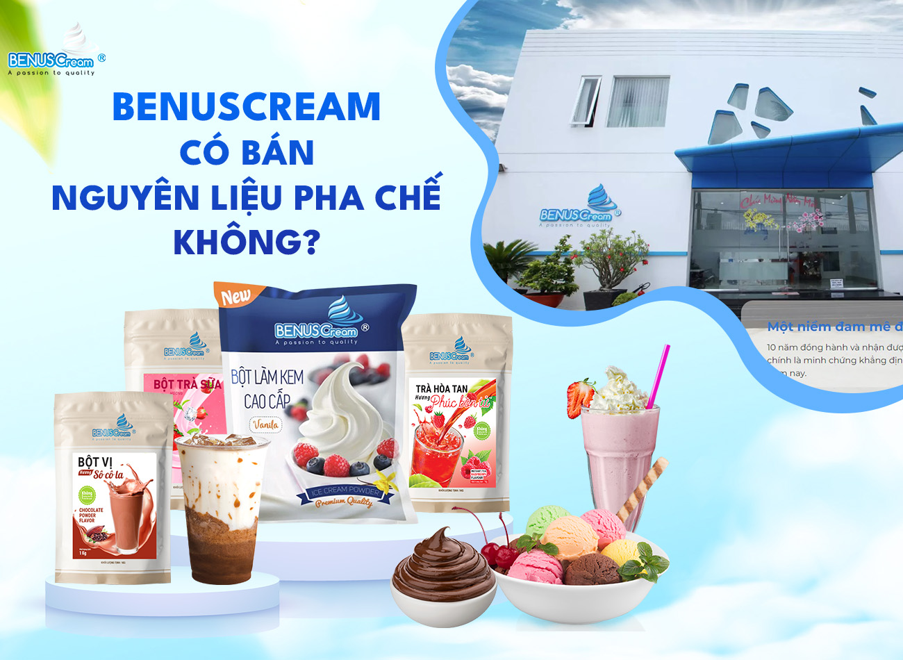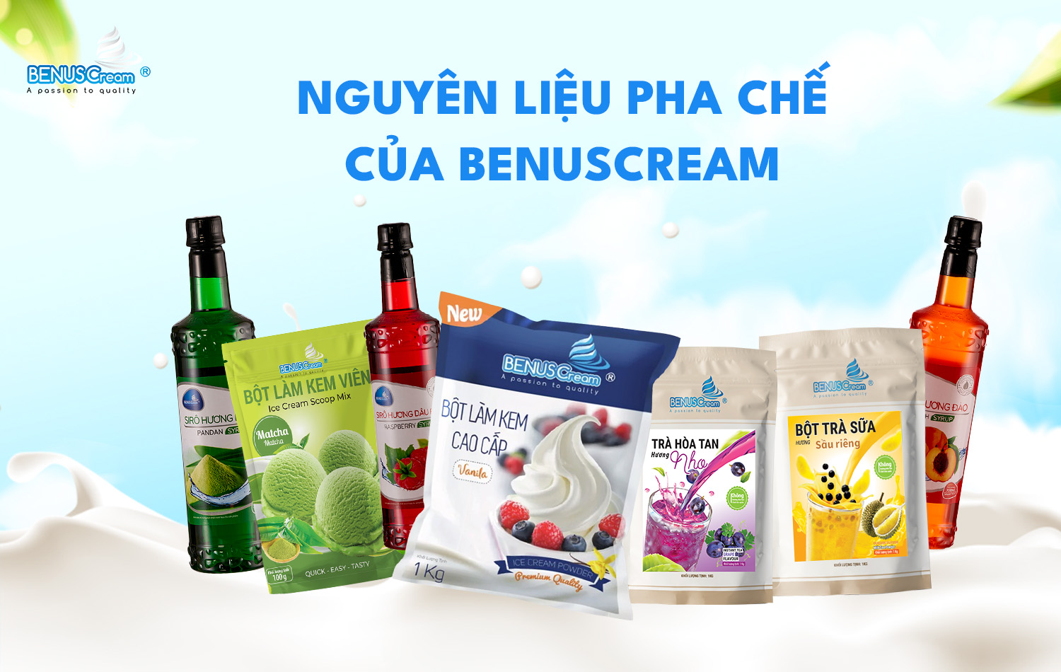Benuscream là một trong những thương hiệu sản xuất bột kem tươi nổi tiếng ở Việt Nam. Các sản phẩm bột kem của Benuscream được người tiêu dùng tin tưởng và sử dụng nhiều bởi chất lượng tốt cũng như giá thành hợp lý.